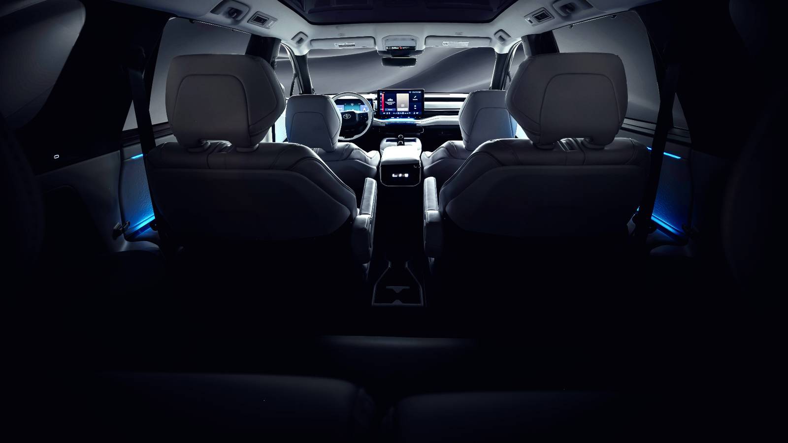 This image certainly reveals a lot about the spacious interior, and zooming in (as we did above) shows a large, horizontally oriented touchscreen protruding upward from the instrument panel, much like in the 2026 Toyota bZ two-row electric SUV (pictured below).